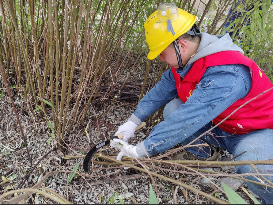勞動中,大家擼起袖子,手拿鐮刀,對綠化帶里的雜草進行清理。雖然雜草叢生、根系牢固,但志愿者個個奮勇爭先、干勁十足,不到一會兒,綠化帶中的雜草、雜物被一一清理干凈,周圍環(huán)境煥然一新。