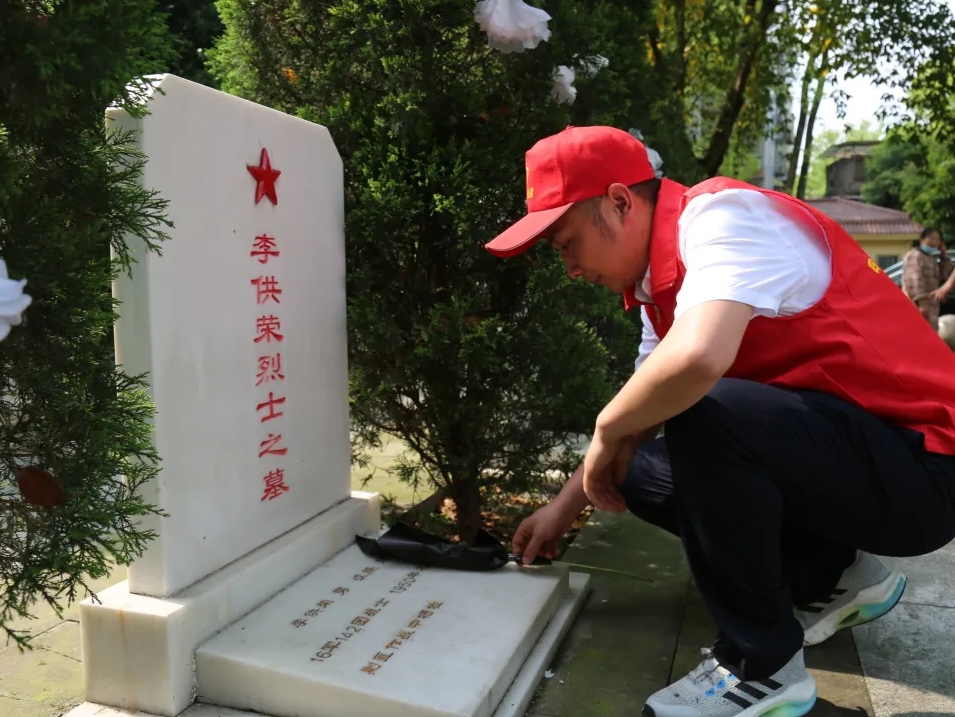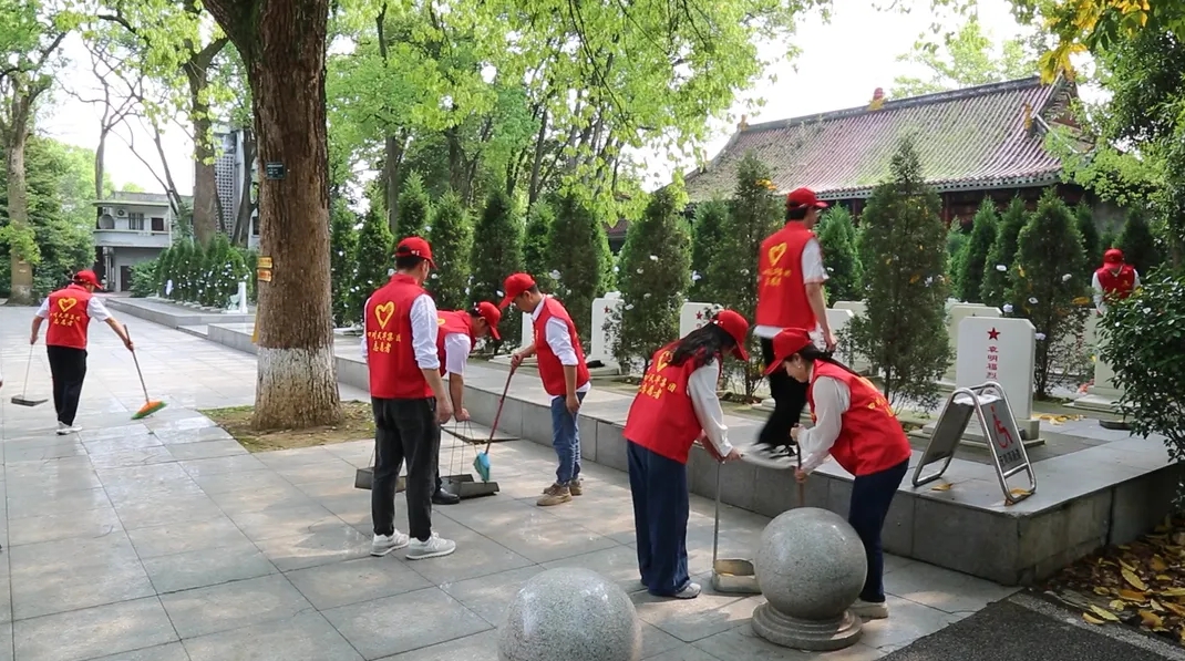 活動最后,志愿者們還擦拭烈士墓碑,清掃樹木枯枝。經過辛勤勞動,烈士陵園變得更顯整潔、肅穆。