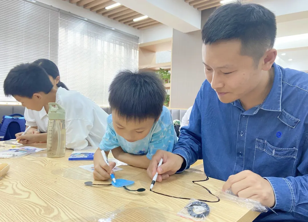 此次活動集團邀請了經驗豐富的木木老師,為孩子們講解顏色搭配、勾描方法等描繪技巧。在老師和家長的指導和幫助下,孩子們挑選喜愛的顏色,全神貫注地繪畫,不時跟家長交流心得。